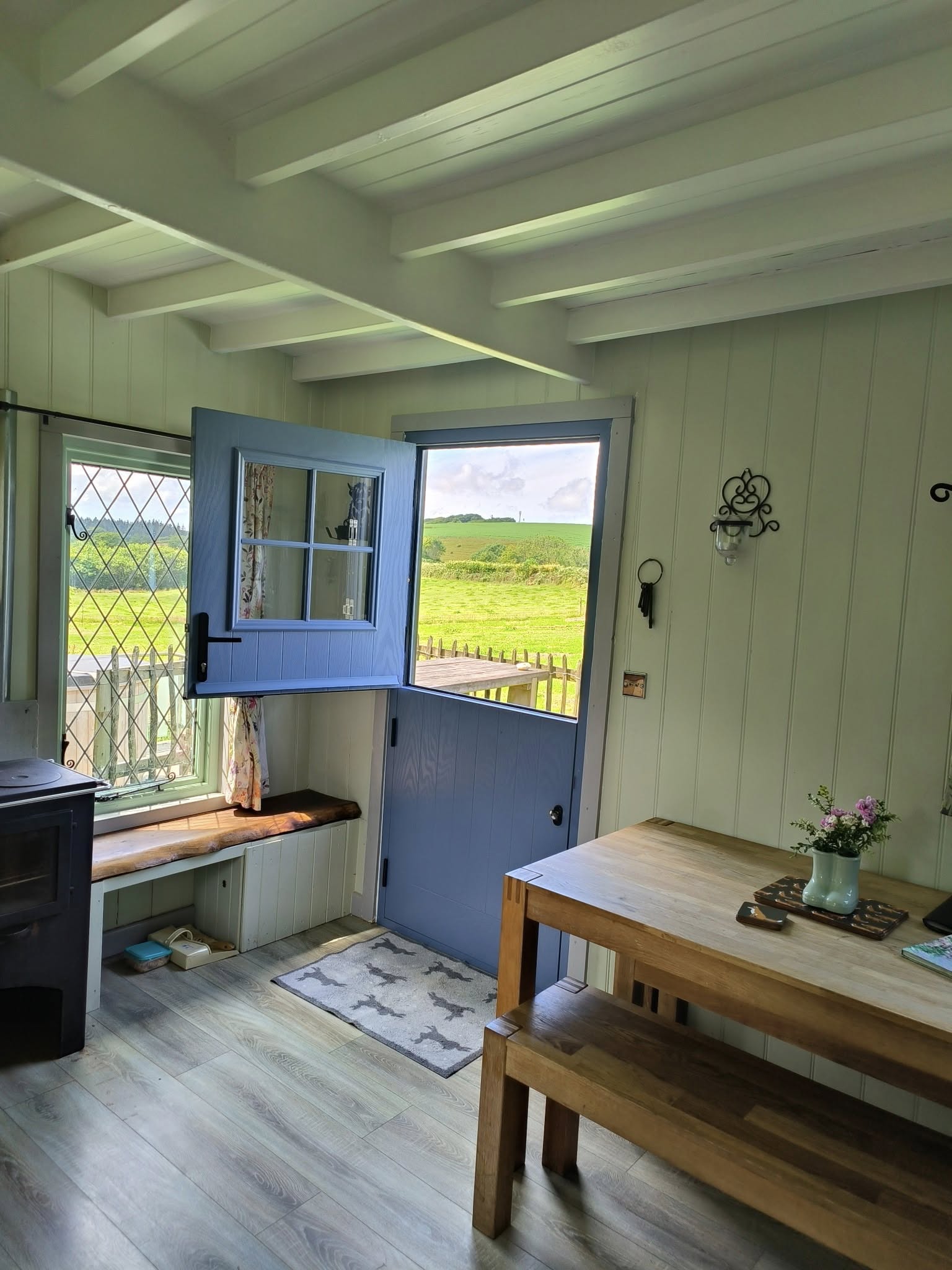 Our home built Shepherd Hut is beautifully equipped with everything you will need for a relaxing, memorable and comfortable stay. The wood burning stove will keep you toasty warm and the views from the stable door towards Wistlandpound Reservoir.
