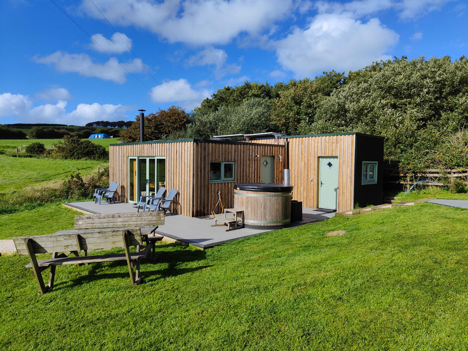 All our huts have their own firepits, bbq’s, kitchens and wood fired hot tubs, so there is no need to share any of these with other guests. The Crinkly Cabin also includes a lovely wood fired sauna!
